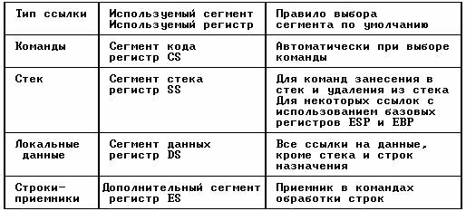 базы используются регистры ESP или EBP, по умолчанию выбирается сегмент SS. Во