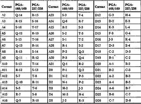 назначению совпадают с разводкой выводов процессора 486, но имеют смещенную