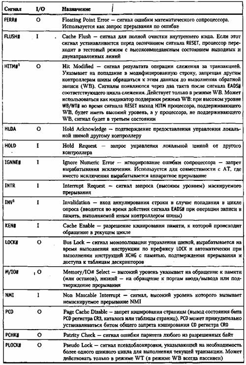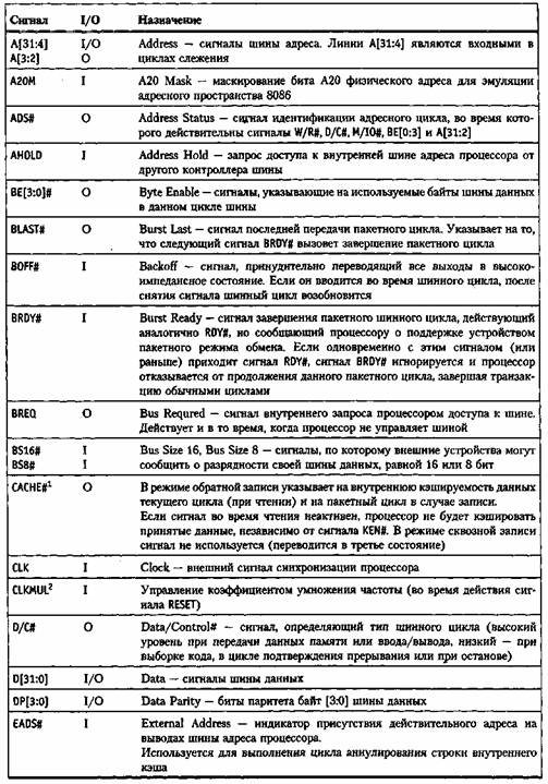 Таблица 5. Назначение сигналов процессора 486