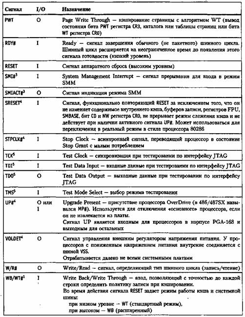 6 Сигнал UP является входным для процессоров в корпусе PGA-168 и выходным для остальных. ' Имеется только у