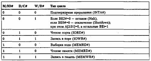 Таблица 6. Декодирование шинных циклов процессора 486