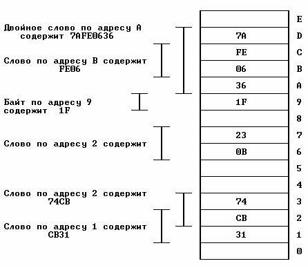 Рис. 7. Байты, слова и двойные слова