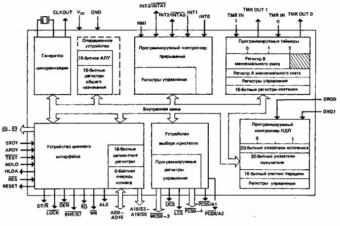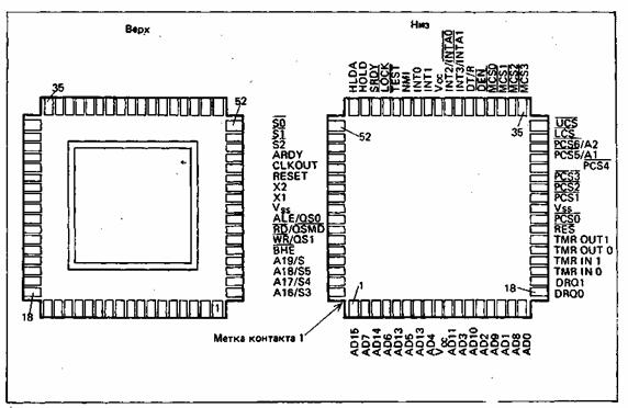 Разводка контактов и схема процессора 80186 приведены на Рис. 1., откуда видно,