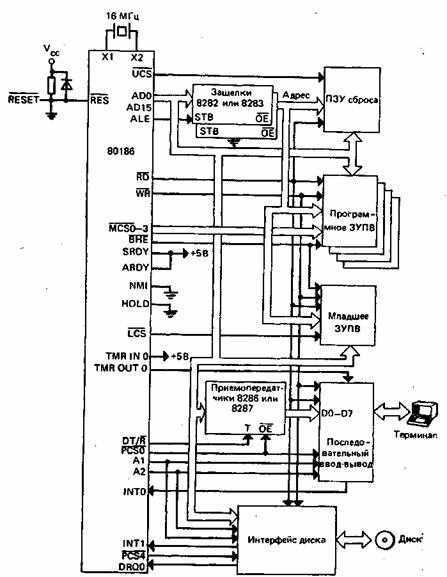 3 иллюстрирует типичную конфигурацию малой системы на базе процессора 80186, а
