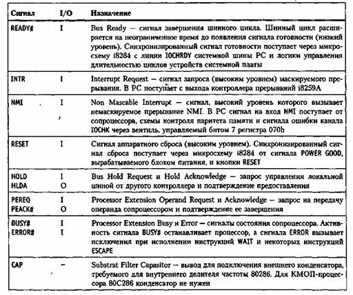 Назначение сигналов процессора 80286