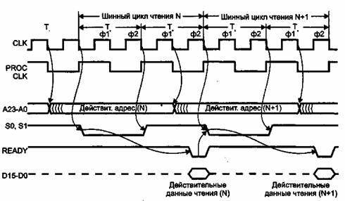Внешние схемы с помощью задержки сигнала READY# могут растягивать цикл на любое