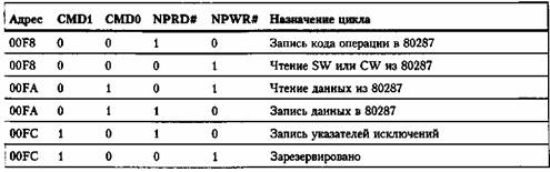 относящиеся к сопроцессору, поэтому сопроцессор 287 применения отдельной