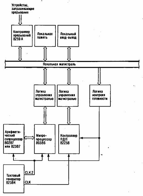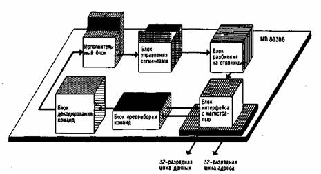 между МП 80386 и его окружением. Он принимает внутренние запросы для выборки команд от блока