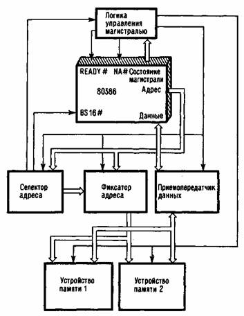 активный сигнал READY # для завершения цикла магистрали МП 80386 и сигнал NA# для