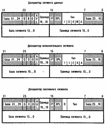 дескрипторы сегментов хранят необходимые параметры защиты. На рис. 6.2 показаны имеющие отношение к защите поля дескрипторов